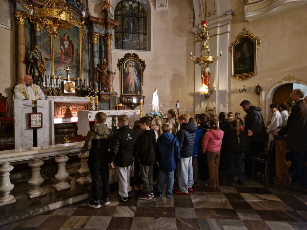Ostatnie w tym roku październikowe nabożeństwo fatimskie zgromadziło wielu parafian, którzy przyszli, by wspólnie modlić się u stóp Matki Bożej. Nabożeństwo poprowadził ks. proboszcz Jacek, a w modlitwę aktywnie włączyła się młodzież przygotowująca się do sakramentu bierzmowania – to oni prowadzili rozważania różańcowe i poszczególne dziesiątki.