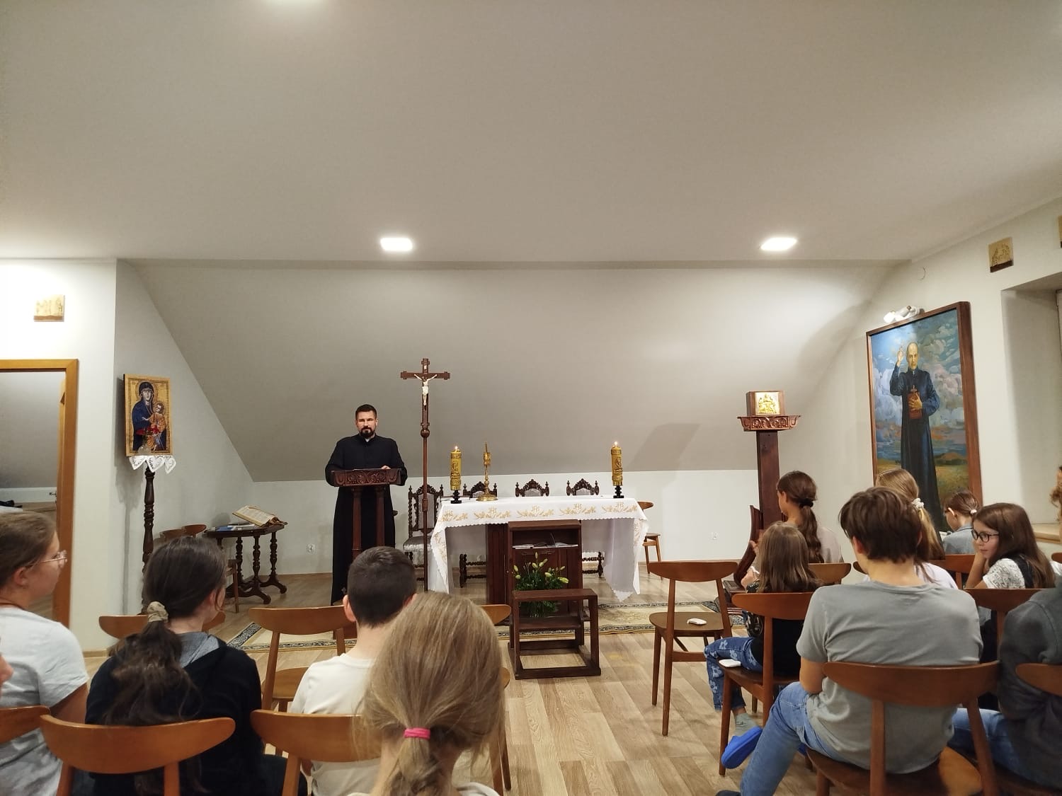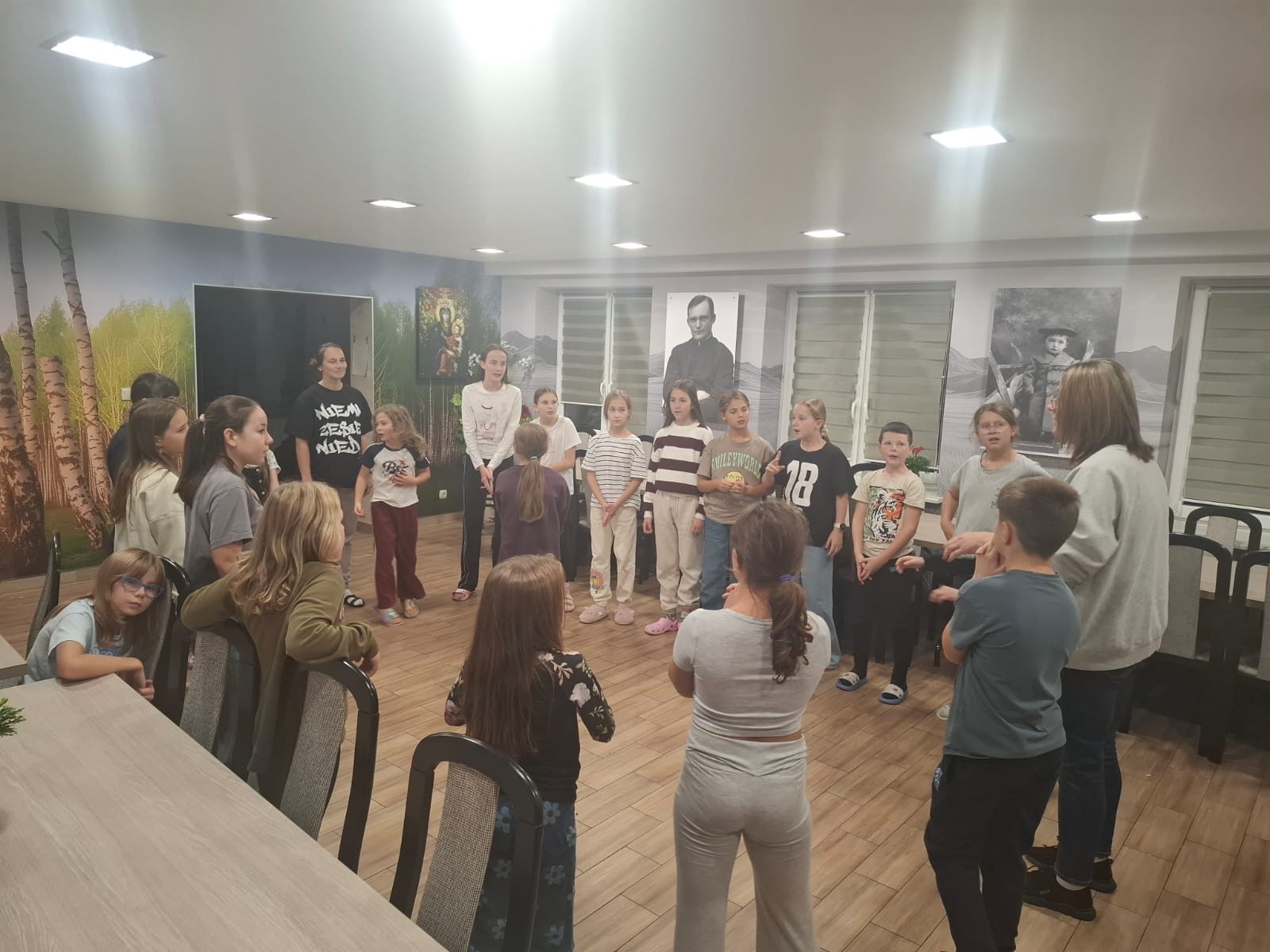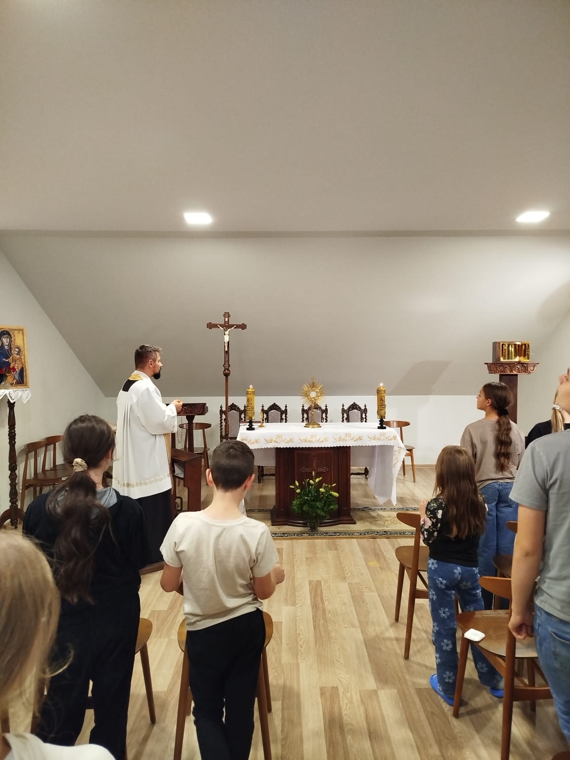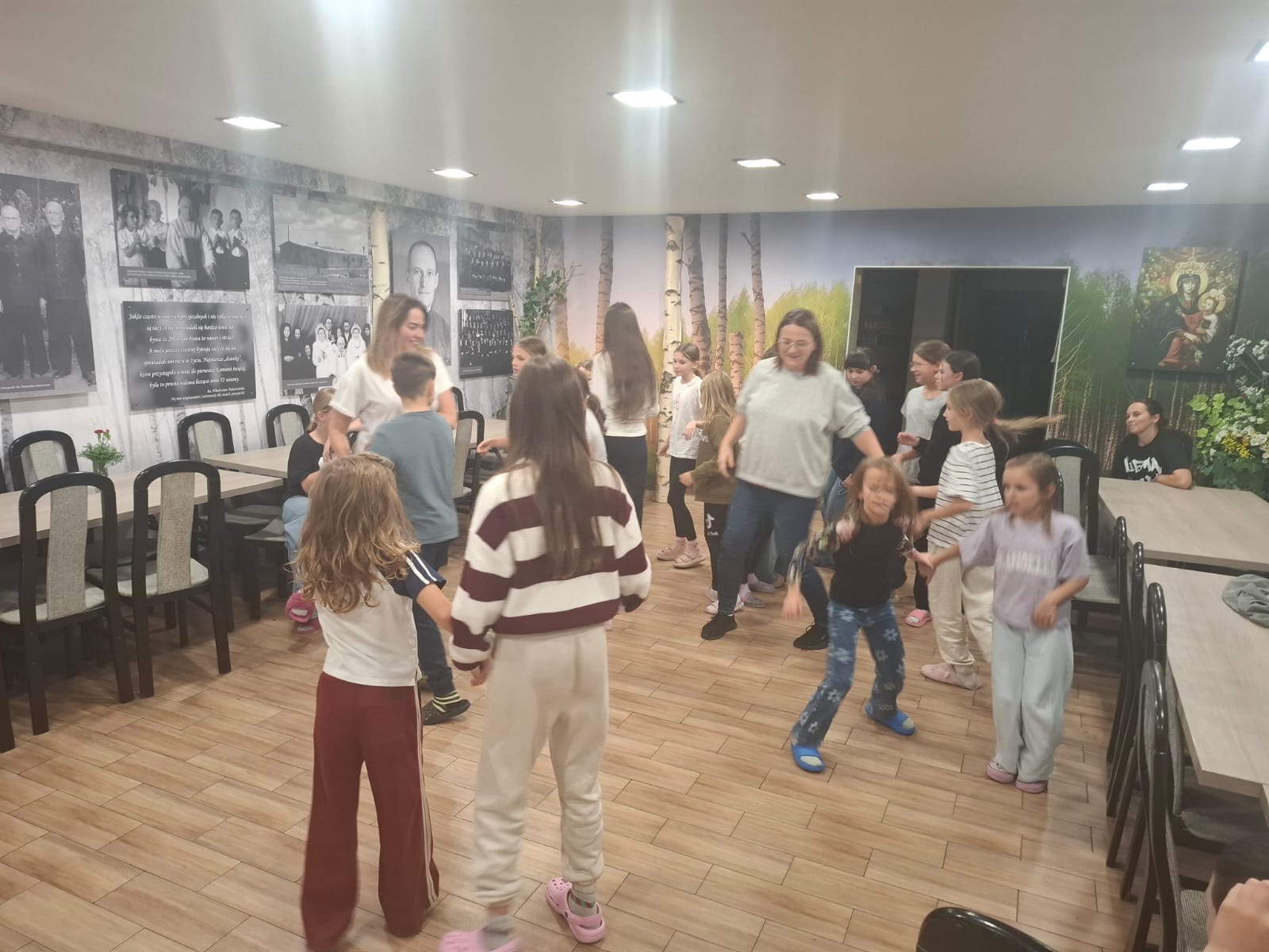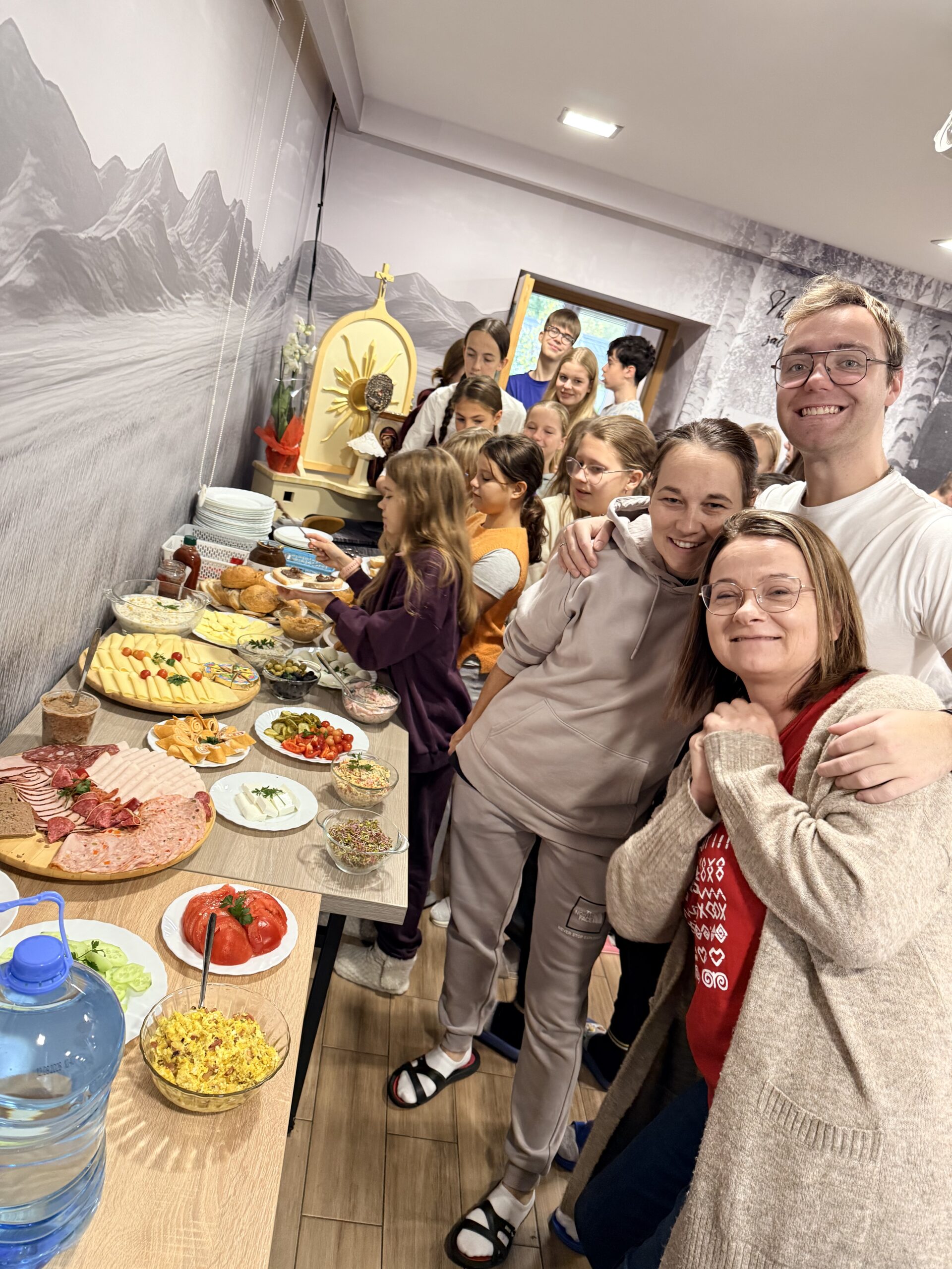 Po przyjeździe na miejsce, pierwsze ekscytacje- piękny, odremontowany Dom Rekolekcyjny ks. Władysława Bukowińskiego. Kiedy opadły emocje lokacyjne, wyraźnie było słychać burczenie w brzuchach, a w powietrzu unosił się kuszący zapach…Zapach dobiegał z kuchni, gdzie szanowne Panie kucharki- Beata i Brygida, szykowały same smakowitości. Po jedzonku, nadszedł czas, by rozpocząć część wyjazdu, która miała cel wzmocnienia duchowego/mentalnego. Przed księdzem niełatwe zadanie- tak poprowadzić konferencję, tak dobrać słowa, wątki, żeby zaciekawić i dzieci i młodzież…Na początek Msza Święta i pierwsza część cyklu rozważań, których głównymi Bohaterkami były Rut i Noemi. Tak naprawdę, to tylko 4 krótkie rozdziały w Piśmie Świętym a pokazują, jak wielka może być miłość. Co ciekawe, miłość synowej i teściowej – Rut i Noemi. Każdy z nas, ma w głowie różne żarty na temat teściowych. A jednak, taka miłość jest możliwa, choć wcale nie była to łatwa relacja. Można śmiało powiedzieć, że Rut jest nauczycielką miłości i oddania. Rut, to przykład dobra, uczynności i pracowitości. Jej życie udowadnia, że tylko całkowicie oddając się w ręce Jezusa, możemy być szczęśliwi i bezpieczni. To taka mała podpowiedź, jak żyć…Ksiądz Mariusz nakreślił też postać księdza Bukowińskiego, który w zasadzie, jest gospodarzem budynku. Następnie Krzysiek wraz z Mikołajem porwali całą grupę do zabawy. Misja- poznać się, by wspólnie świetnie spędzić ten czas. Było głośno, radośnie, właśnie tak, jak powinno być wśród Młodych 😊 Wieczór był baaardzo długi.