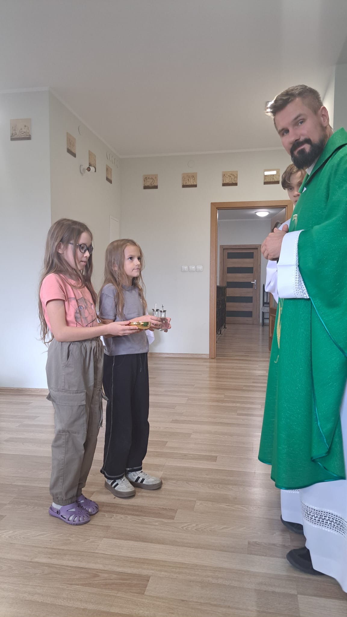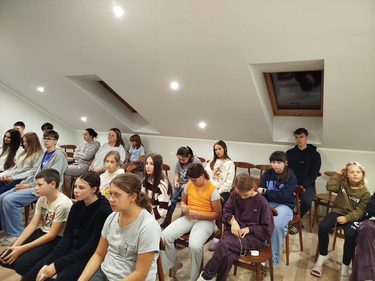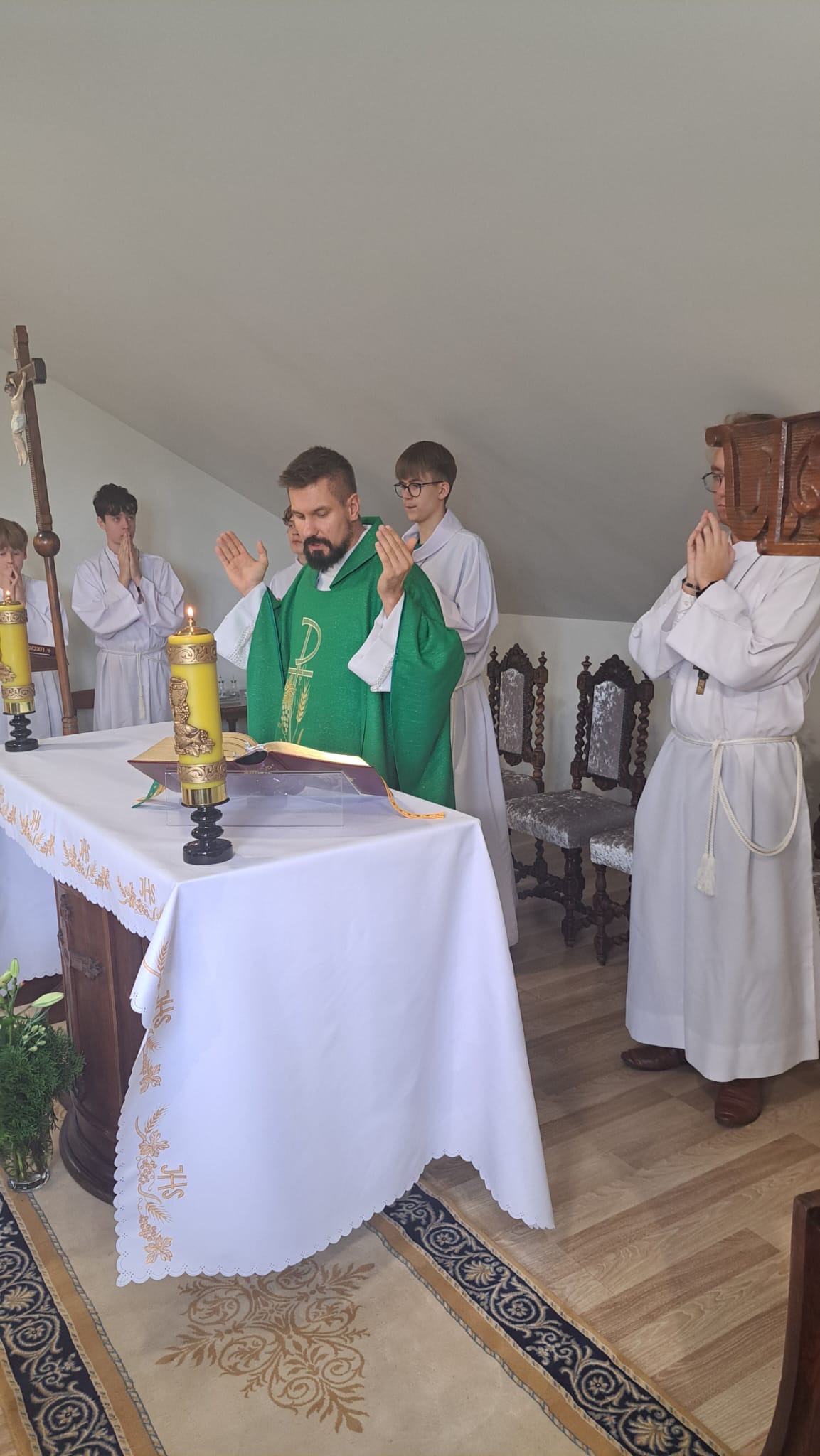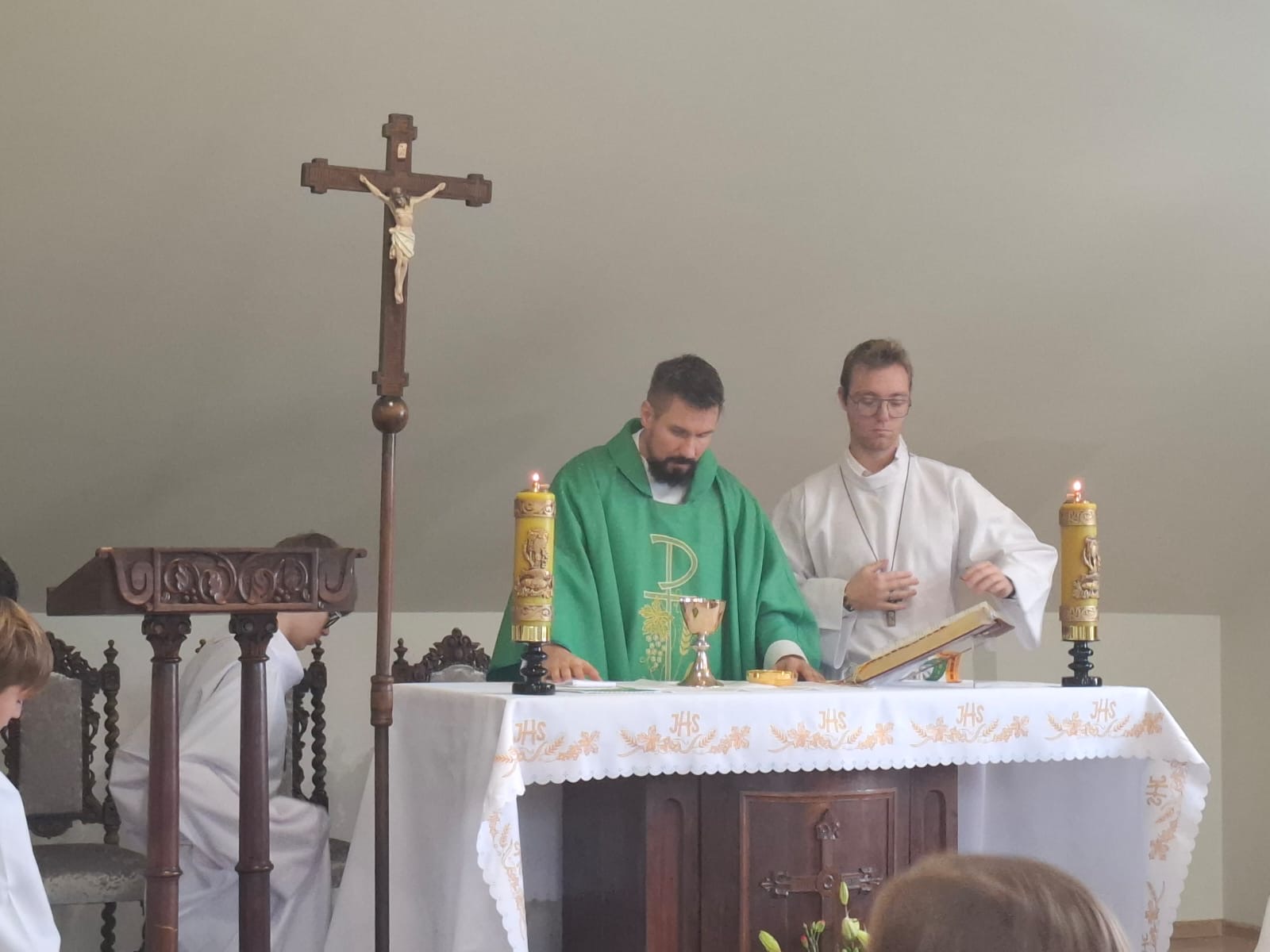Po przyjeździe na miejsce, pierwsze ekscytacje- piękny, odremontowany Dom Rekolekcyjny ks. Władysława Bukowińskiego. Kiedy opadły emocje lokacyjne, wyraźnie było słychać burczenie w brzuchach, a w powietrzu unosił się kuszący zapach…Zapach dobiegał z kuchni, gdzie szanowne Panie kucharki- Beata i Brygida, szykowały same smakowitości. Po jedzonku, nadszedł czas, by rozpocząć część wyjazdu, która miała cel wzmocnienia duchowego/mentalnego. Przed księdzem niełatwe zadanie- tak poprowadzić konferencję, tak dobrać słowa, wątki, żeby zaciekawić i dzieci i młodzież…Na początek Msza Święta i pierwsza część cyklu rozważań, których głównymi Bohaterkami były Rut i Noemi. Tak naprawdę, to tylko 4 krótkie rozdziały w Piśmie Świętym a pokazują, jak wielka może być miłość. Co ciekawe, miłość synowej i teściowej – Rut i Noemi. Każdy z nas, ma w głowie różne żarty na temat teściowych. A jednak, taka miłość jest możliwa, choć wcale nie była to łatwa relacja. Można śmiało powiedzieć, że Rut jest nauczycielką miłości i oddania. Rut, to przykład dobra, uczynności i pracowitości. Jej życie udowadnia, że tylko całkowicie oddając się w ręce Jezusa, możemy być szczęśliwi i bezpieczni. To taka mała podpowiedź, jak żyć…Ksiądz Mariusz nakreślił też postać księdza Bukowińskiego, który w zasadzie, jest gospodarzem budynku. Następnie Krzysiek wraz z Mikołajem porwali całą grupę do zabawy. Misja- poznać się, by wspólnie świetnie spędzić ten czas. Było głośno, radośnie, właśnie tak, jak powinno być wśród Młodych 😊 Wieczór był baaardzo długi.